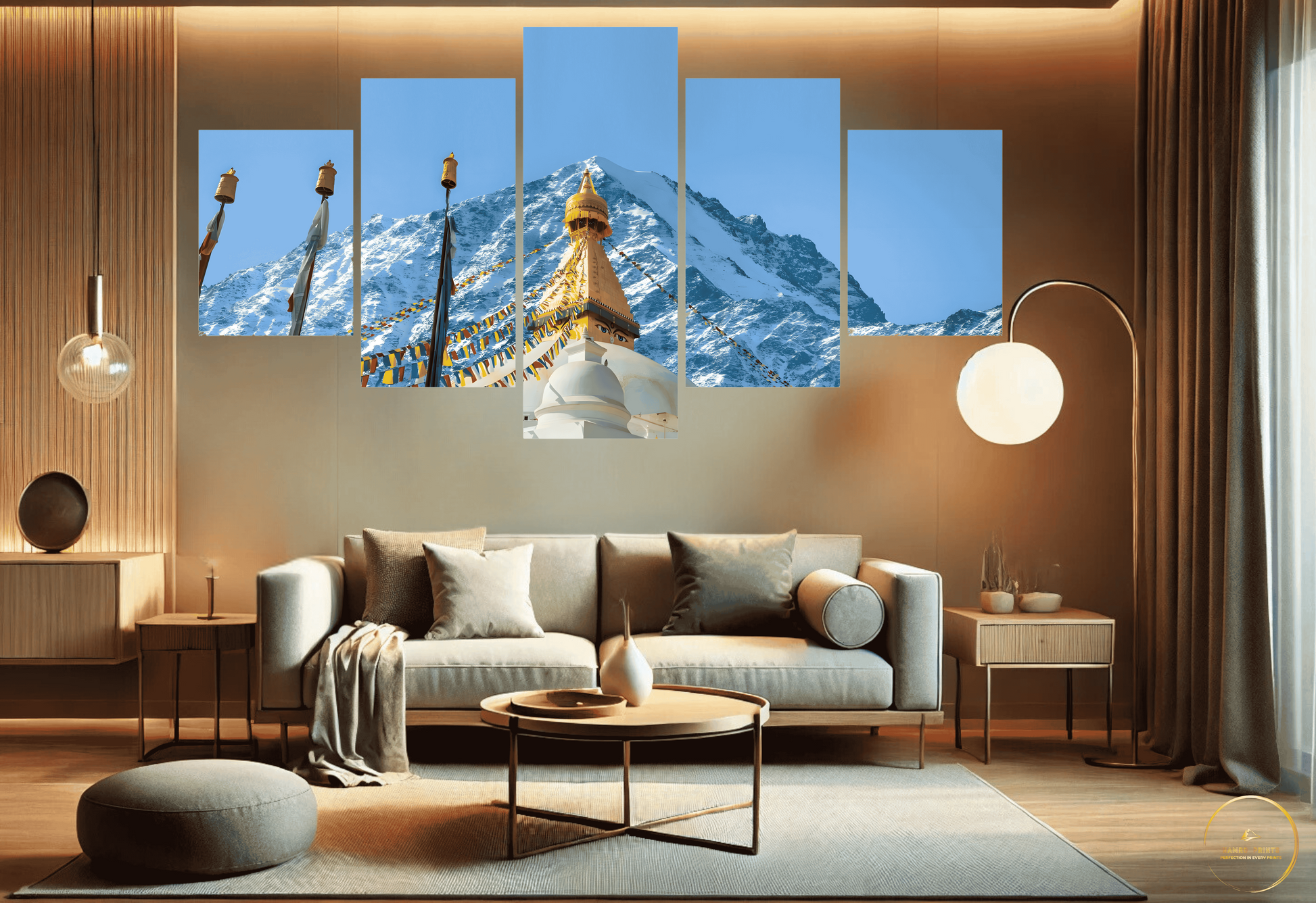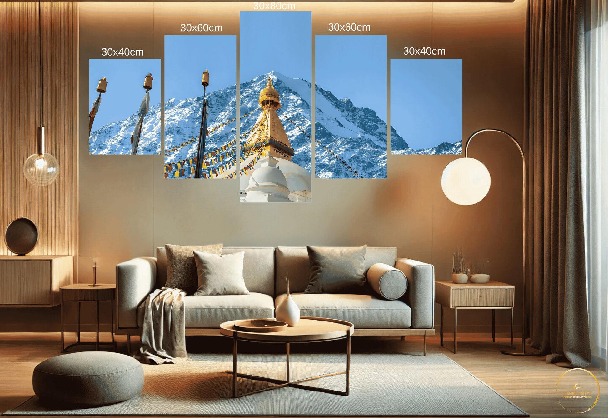 Celebrate your love for Nepal with our breathtaking handcrafted 5 Pcs Boudha Himalaya canvas wall art. From the majestic Himalayas to serene lakes and vibrant cultural landmarks, each piece captures the essence of Nepal’s unparalleled beauty. Whether you're at home or abroad, this artwork is a perfect way to stay connected to the heart of your homeland and share its splendour with the world.