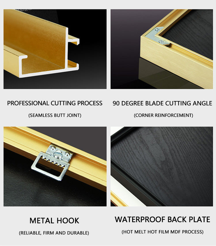 · Aluminium Alloy Frame Durable, moisture-proof, rust-resistant, and corrosion-resistant for long-lasting elegance.